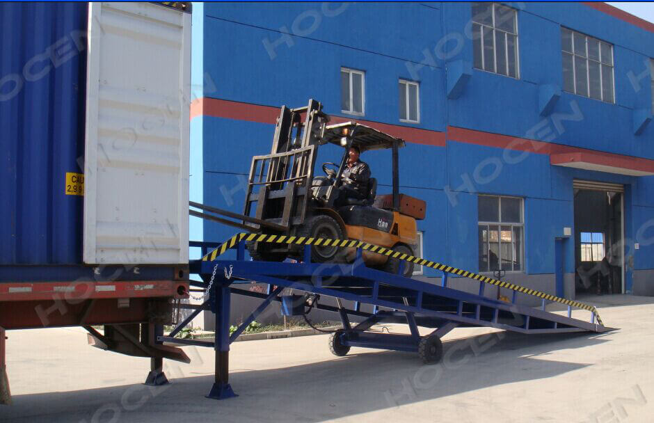 支腿式移动液压登车桥是与叉车配合使用的货物装卸专用辅助设备,有了它,叉车能直接从地面进入汽车车厢内进行装卸货物的作业。能够提高货物装卸速度,节省装卸工作的时间以及人力,是您装卸货物的得力助手。