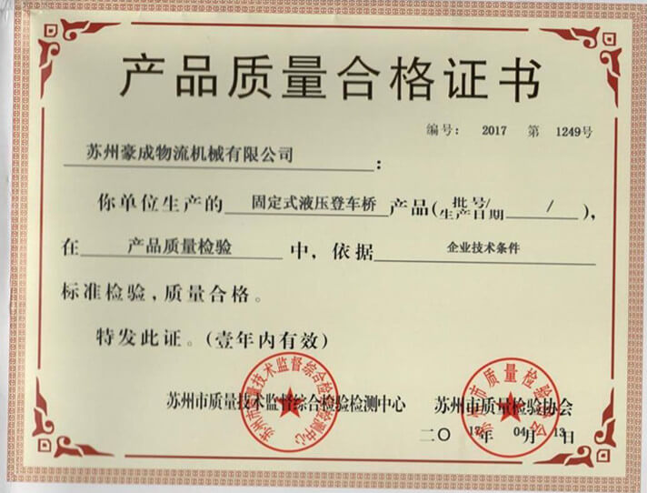 固定式液压登车桥(又名:高度调节板/卸货平台或电动液压月台)是实现货物快速装卸的专用辅助设备,安装在月台、建筑物上,搭接于货车车厢,调节月台、建筑物地面与车厢之间的高度差。登车桥前端的可翻转搭接扳在装卸货物时始终紧贴车厢。登车桥的角度调节功能使使货车与建筑物地面之间架起一座桥梁,各种搬运车可顺利通过登车桥,在建筑物地面与车厢间运送货物。并且,只需一个操作工人作业,即可实现货物的快速装卸。它使企业减少大量劳力,提高工作效率,获取很大经济效益.是现代企业生产,提高物料流通速度。