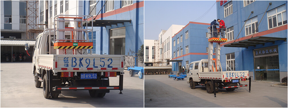 把升降机安装在汽车上的高空作业设备。由专用底盘、工作臂架、三维全旋机构、柔性夹紧装置、液压系统、电气系统和装置等部分组成。由升降机和电瓶车配套改装而成的高空作业专用设备。它利用汽车发动机或电瓶车原有直流动力,勿须外接电源,即可行驶又可驱动升降平台,它移动方便。