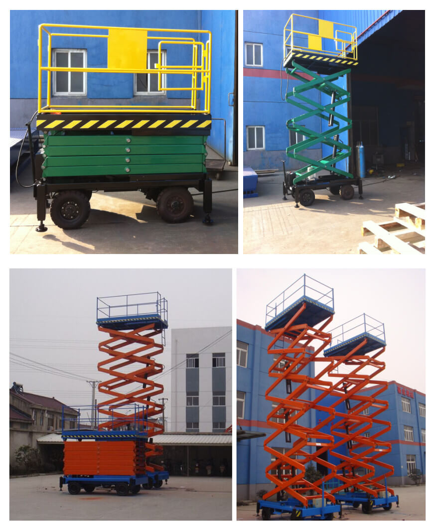 有人工移动式升降机、电动移动式升降机。升降动力分为220V或380V电源,采用国外和国产液压泵站。主要适用于工厂、物业单位、商店装潢、建筑、装饰、场馆布置等行业。