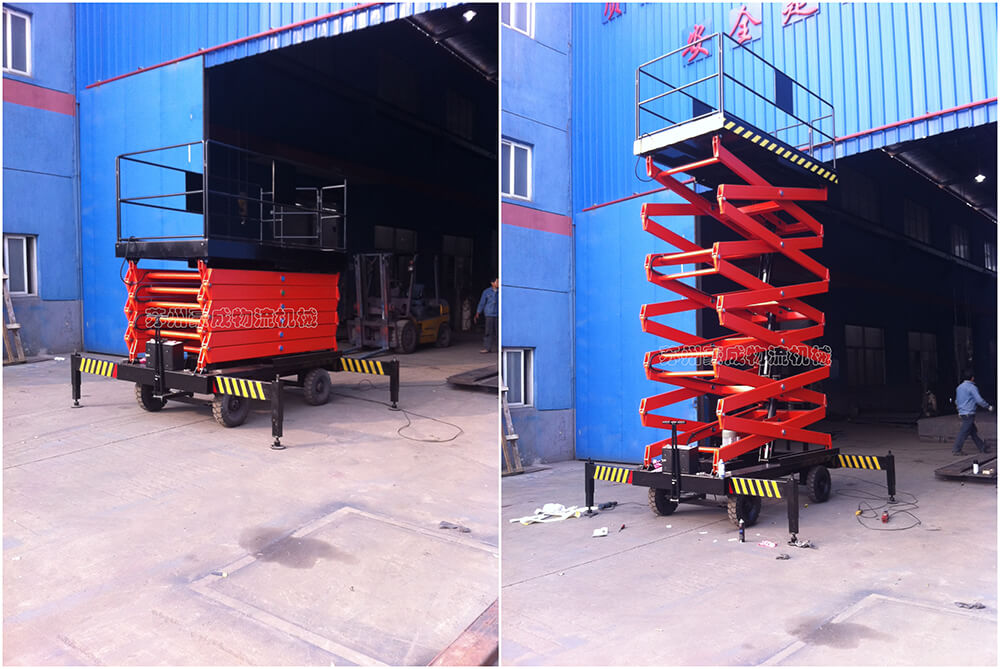 移动式形升降平台是用途广泛的高空作业专用设备。它的剪叉式机械结构,使升降台起升后有较高的稳定性,宽大的作业平台和较高的承载能力,使高空作业范围更大,并适合多人同时作业。它使高空作业效率更高。