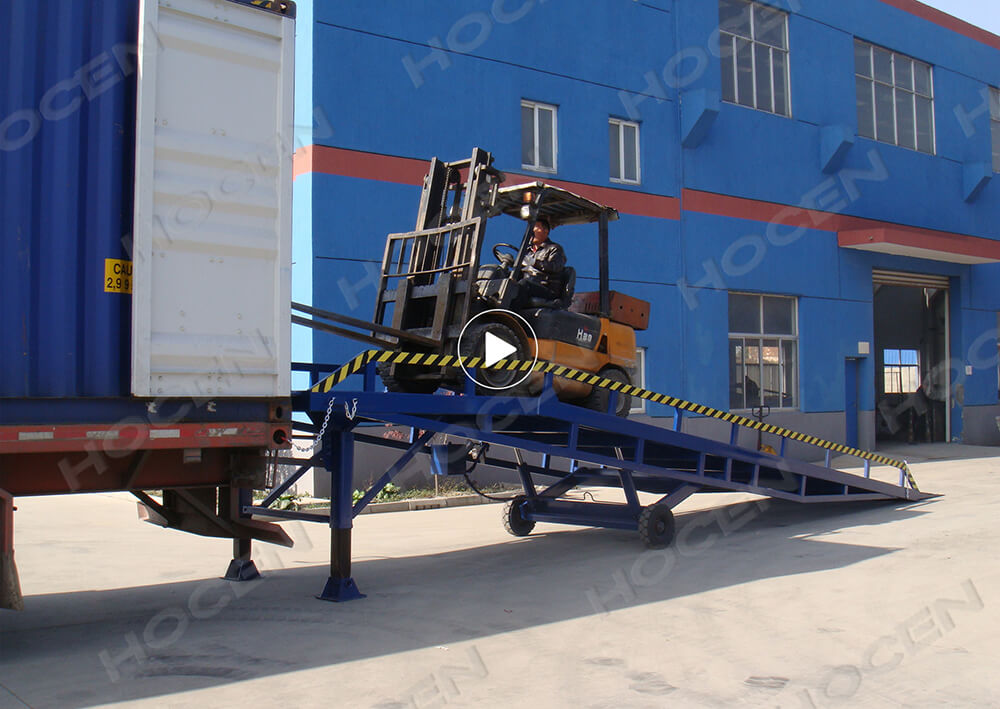 只需单人操作,不需动力电源,即可实现货物的快速装卸。移动式登车桥广泛用于无装卸设备的货台及流动装卸场所,是与叉车配合使用的货物装卸辅助设备。可根据汽车车厢的高低调节高度,叉车可以直接通过本设备驶入车厢内部进行货物的批量装卸。
