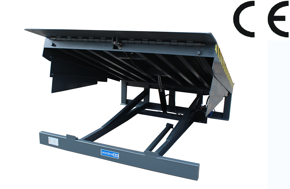 固定式液压登车桥(又名:高度调节板/卸货平台或电动液压月台)是实现货物快速装卸的专用辅助设备,安装在月台、建筑物上,搭接于货车车厢,调节月台、建筑物地面与车厢之间的高度差。登车桥前端的可翻转搭接扳在装卸货物时始终紧贴车厢。登车桥的角度调节功能使使货车与建筑物地面之间架起一座桥梁,各种搬运车可顺利通过登车桥,在建筑物地面与车厢间运送货物。并且,只需一个操作工人作业,即可实现货物的快速装卸。它使企业减少大量劳力,提高工作效率,获取很大经济效益.是现代企业生产,提高物料流通速度。